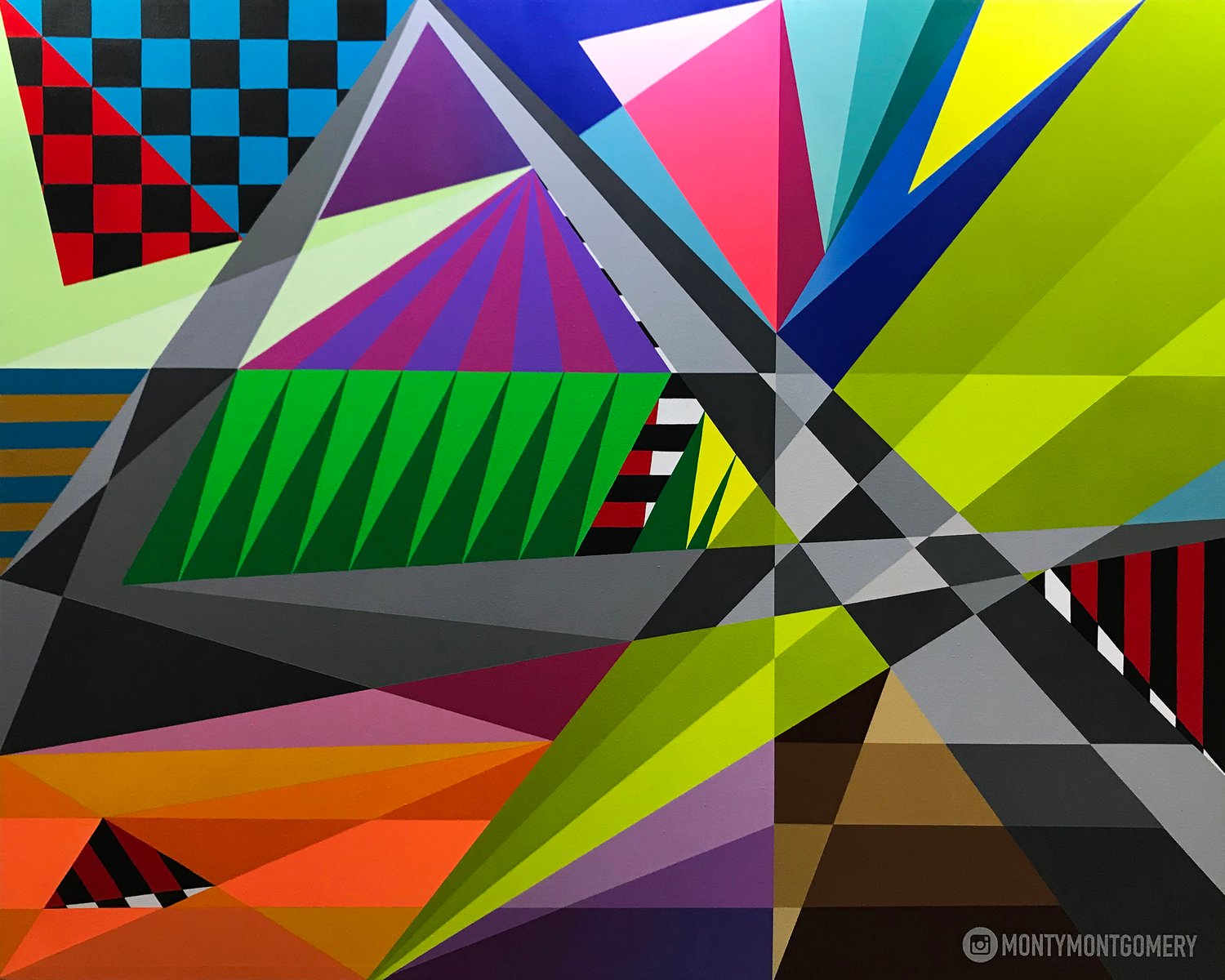 5' x 4' x 2.5" | Montana Gold aerosol and brushed acrylic on canvas | Sides of the canvas are black | | Wire and hanging hardware is included and installed.